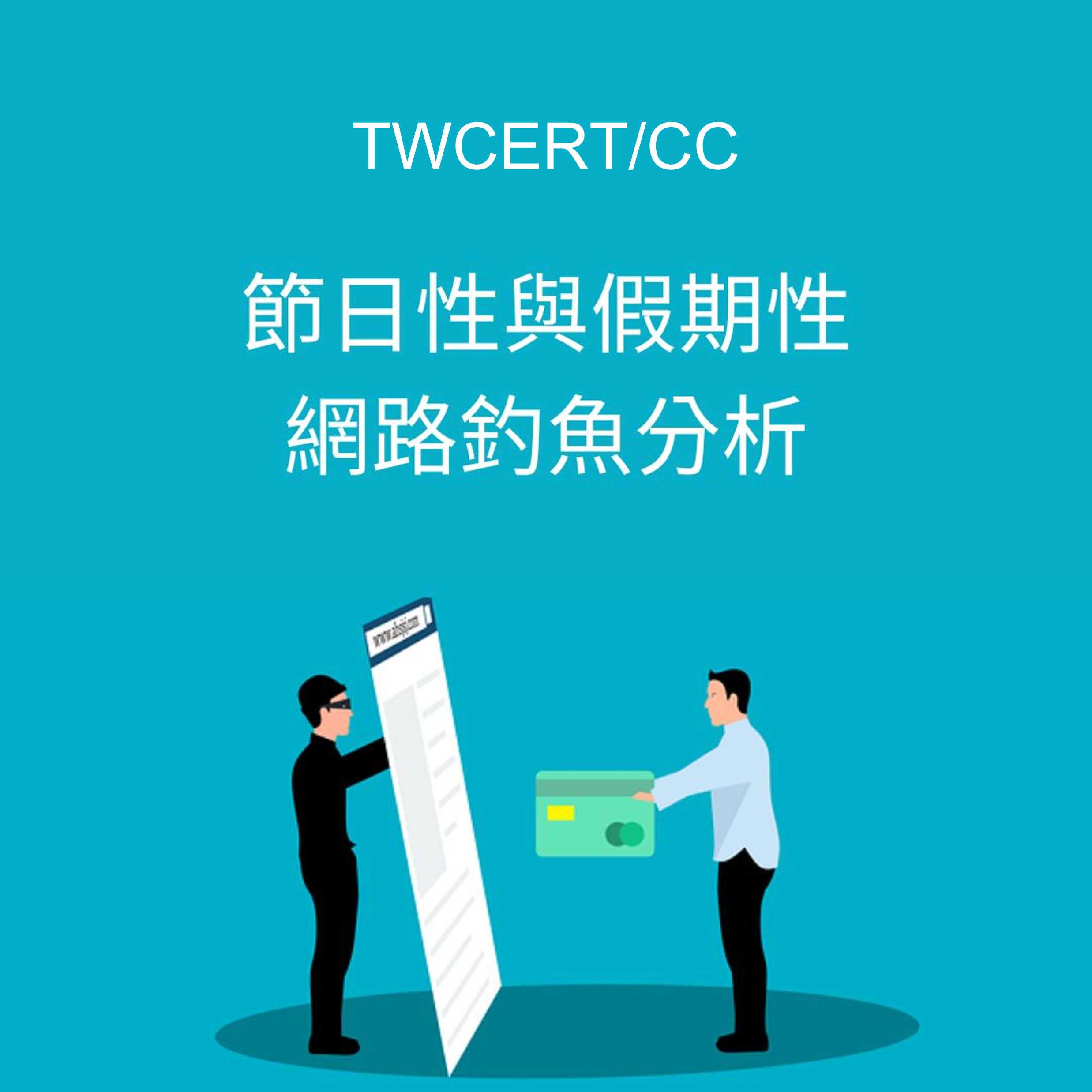 - 關於節日性與假期性的網路釣魚攻擊,其類型大致分為假冒的銷售與廣告、假冒的網路購物驗證訊息、假冒的訂單商品物流資訊,以及假冒的善心捐款求助等,讓使用者在假日或節日進行購物、瀏覽網頁或社群媒體時,往往一不小心就因此上當受騙。