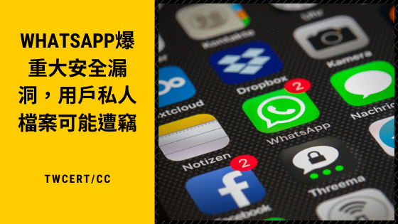 Facebook臉書旗下著名通訊軟體WhatsApp,被發現有重大安全漏洞,可能讓用戶私人檔案被有心人士竊取,並陷入網路釣魚的風險。