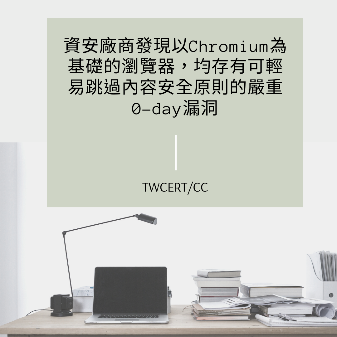 資安廠商 PerimeterX 的研究人員,近日發表研究報告,指出市面上以 Chromium 為基礎的各種瀏覽器,存有一個可讓駭侵者跳過網站內容安全原則(Content Security Policies,CSP)的嚴重 0-day 資安漏洞。