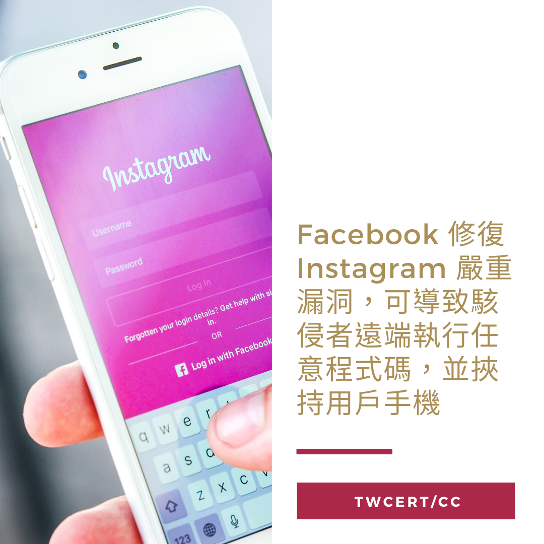 Facebook 近日針對於四月初發現的 Instagram 嚴重資安漏洞發表修補新版;這個漏洞可導致用戶的手機遭駭侵者遠端執行任意程式碼,並且挾持手機中的相機、麥克風等裝置。
