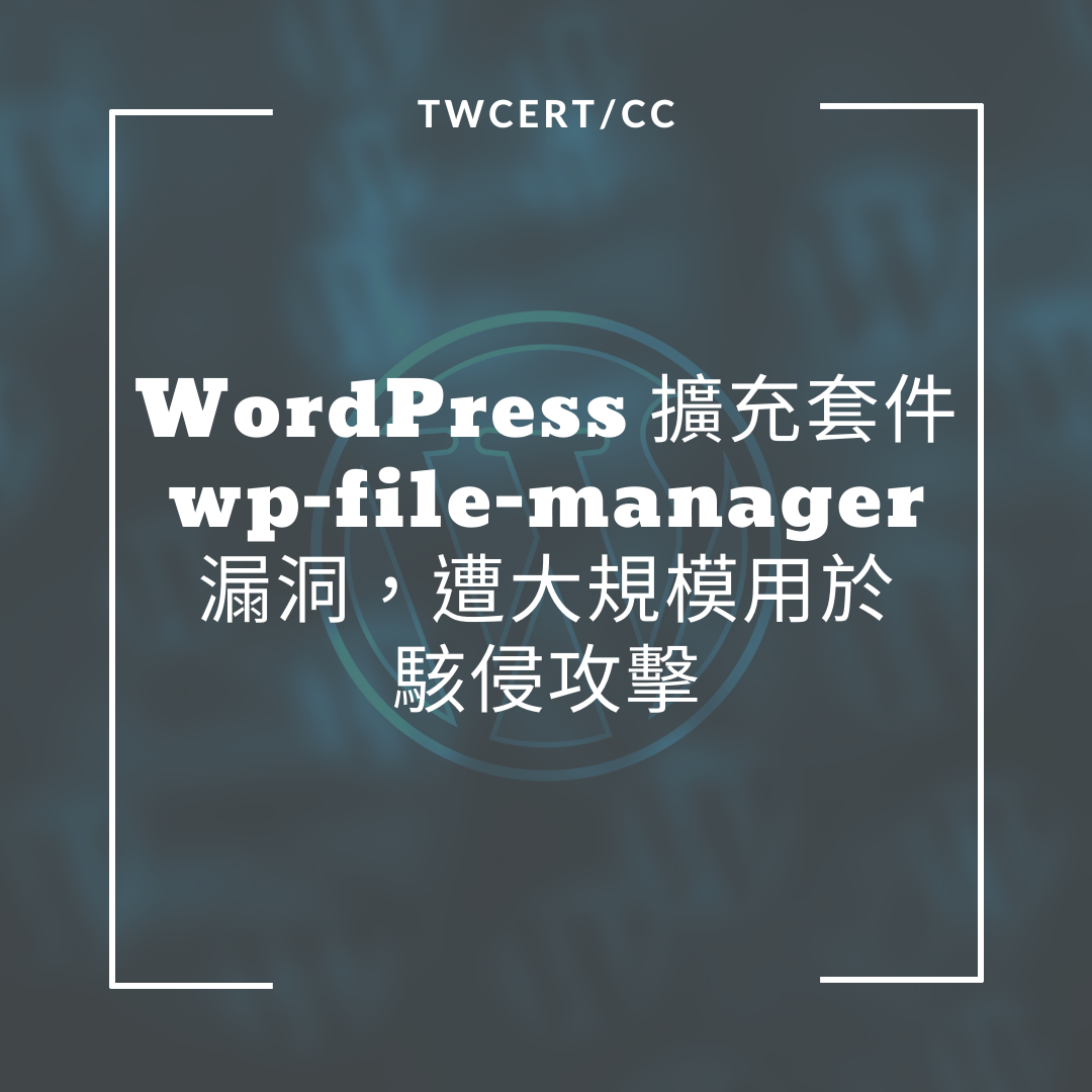 WordPress 上廣為使用的檔案管理擴充套件 wp-file-manager,日前遭發現一個嚴重資安漏洞,可能遭駭侵者用以遠端執行任意程式碼;該漏洞已遭駭侵者用以大規模發動攻擊,使用此擴充套件的 WordPress 管理者,應儘速更新以避免遭此漏洞影響。