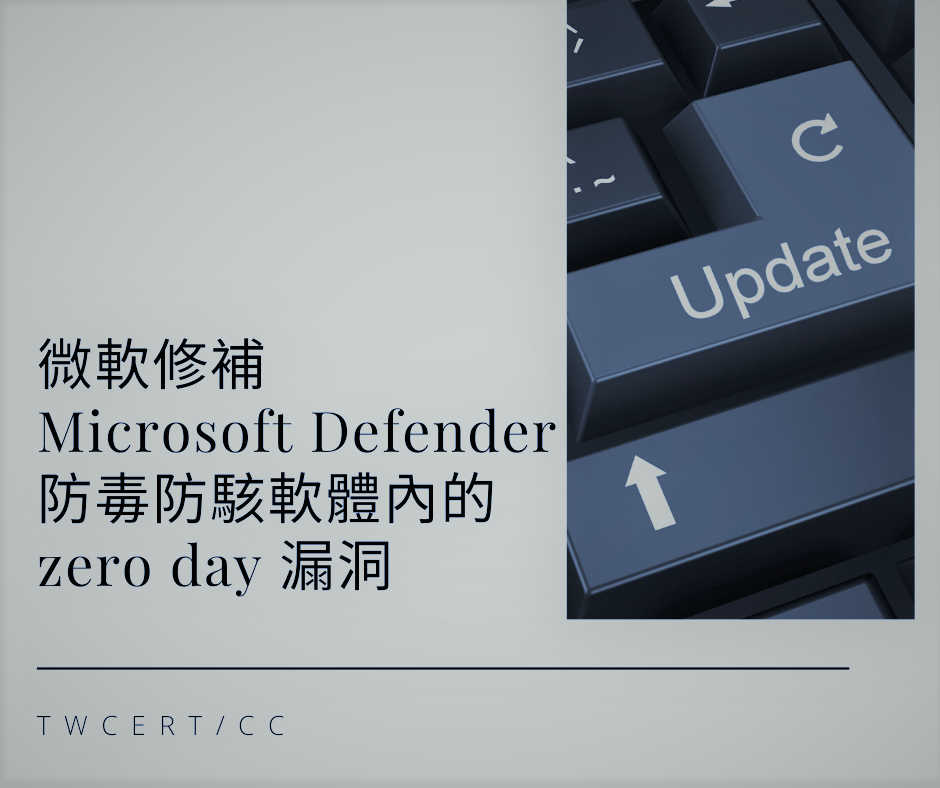微軟緊急修復存於 Microsoft Defender 防毒防駭軟體防護引擎組件中的嚴重 zero day 漏洞,該漏洞可能導致駭侵者遠端執行任意程式碼,而且已發現利用該漏洞進行的多起駭侵攻擊行動。