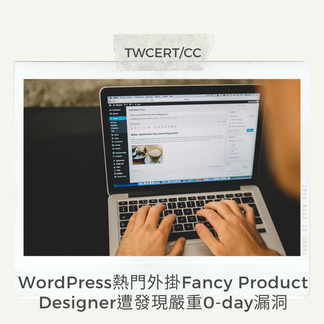 資安廠商發現 WordPress 熱門外掛程式 Fancy Product Designer 存有一個可讓駭侵者遠端執行任意程式碼的 0-day 嚴重漏洞;目前已觀測到大量使用該漏洞進行的攻擊事件,WordPress 有安裝該外掛的用戶,應特別提高警覺。