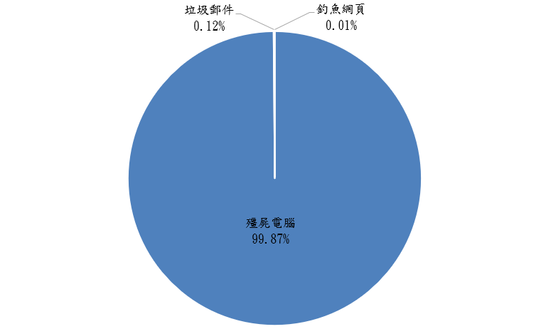 殭屍電腦99.87% 垃圾郵件0.12% 釣魚網頁0.01%