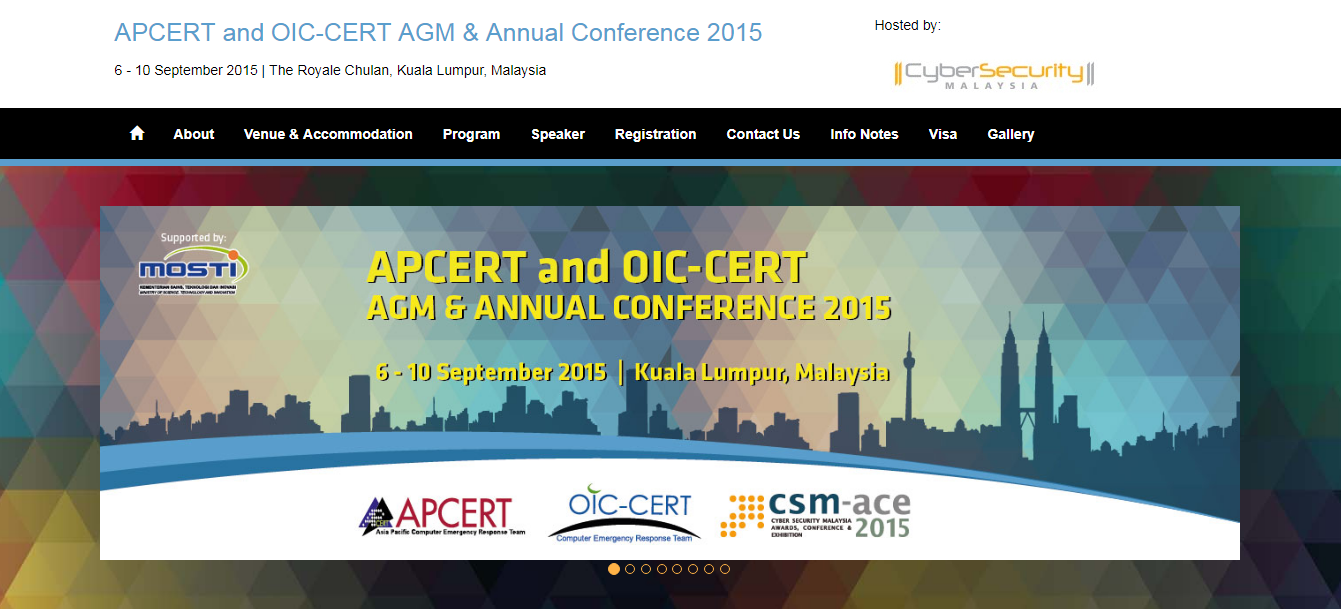 亞太地區電腦危機處理小組2015年會(APCERT and OIC-CERT AGM & Annual Conference 2015, 簡稱APCERT AGM & Conference 2015)於2015年9月6日至9月10日,於馬來西亞吉隆坡舉行,為亞太地區定期舉行之國際資安活動,此次活動主辦單位為MyCERT及CyberSecurity Malaysia。