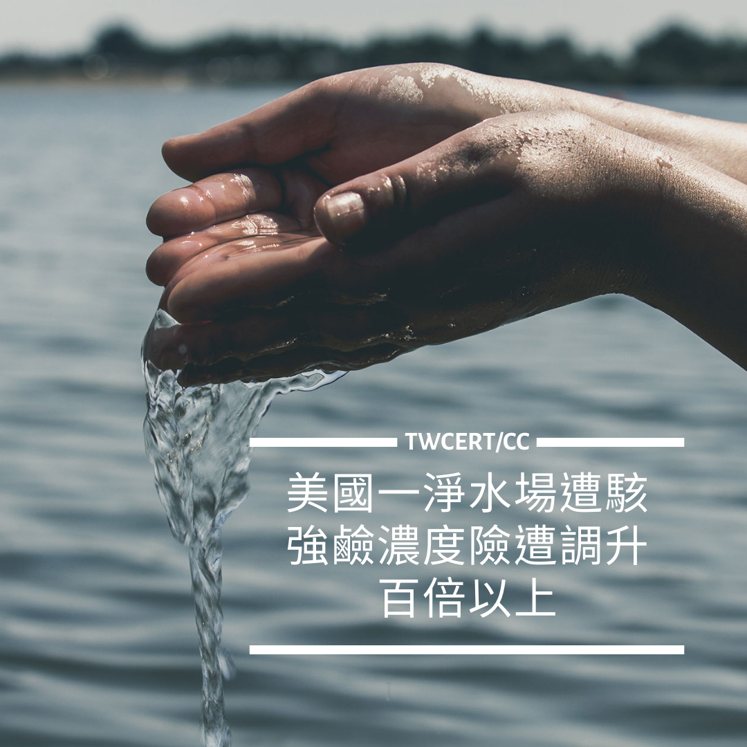 美國一間淨水廠於 2 月初遭駭侵攻擊,駭侵者試圖將淨水過程中使用的強鹼藥劑氫氧化鈉的濃度調高百倍以上,幸好被該廠人員及時發現,未能得逞。
