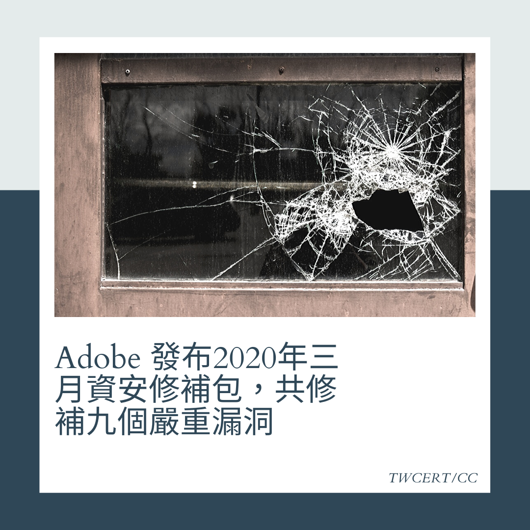 Adobe 發布2020年三月資安修補包,一共修補九個嚴重漏洞,以及其他次要資安漏洞。