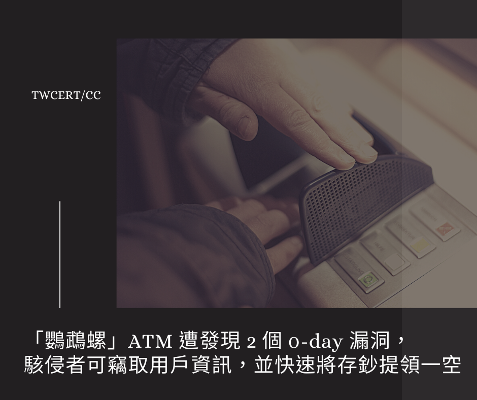 「鸚鵡螺」ATM 遭發現 2 個 0-day 漏洞,駭侵者可竊取用戶資訊,並快速將存鈔提領一空