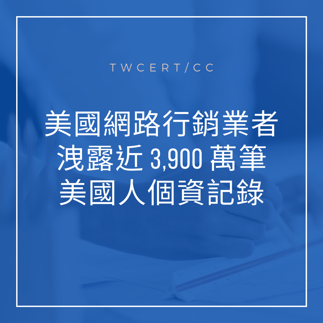 美國網路行銷業者洩露近 3,900 萬筆美國人個資記錄