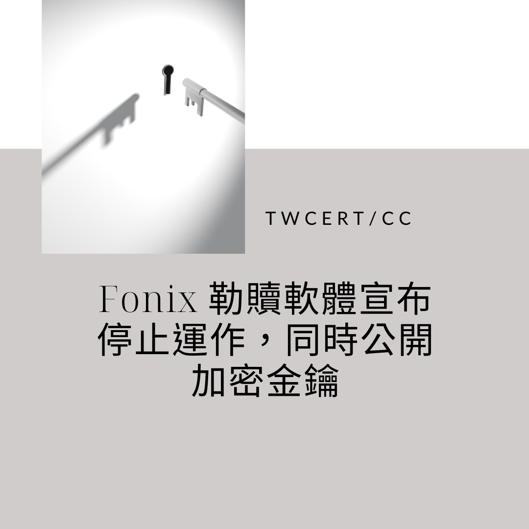 一個稱為 Fonix 的勒贖軟體,其幕後的駭侵團體,於近日在 Twitter 上發文,宣稱已經停止運作,同時將在日後公開提供其用來進行加密勒贖攻擊的金鑰。
