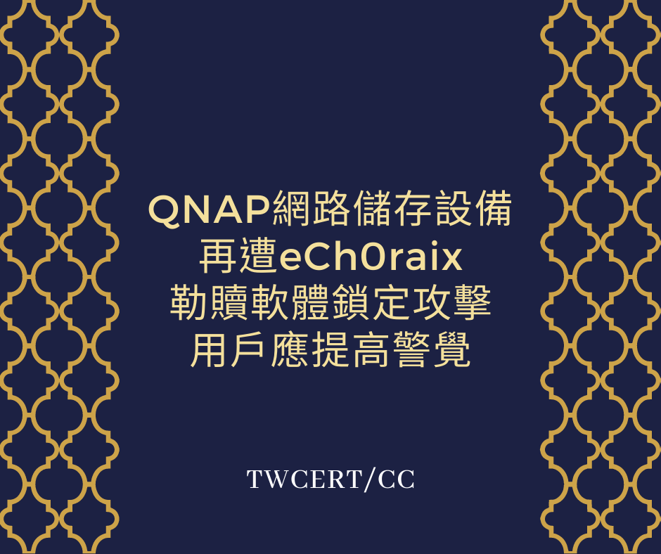 全球知名的台灣網路儲存裝置(Network Attached Storage, NAS)製造商 QNAP,近期發布資安警訊,指出目前有一個稱為 eCh0raix 的勒贖軟體,正在發動大規模勒贖攻擊,用戶應提高警覺。