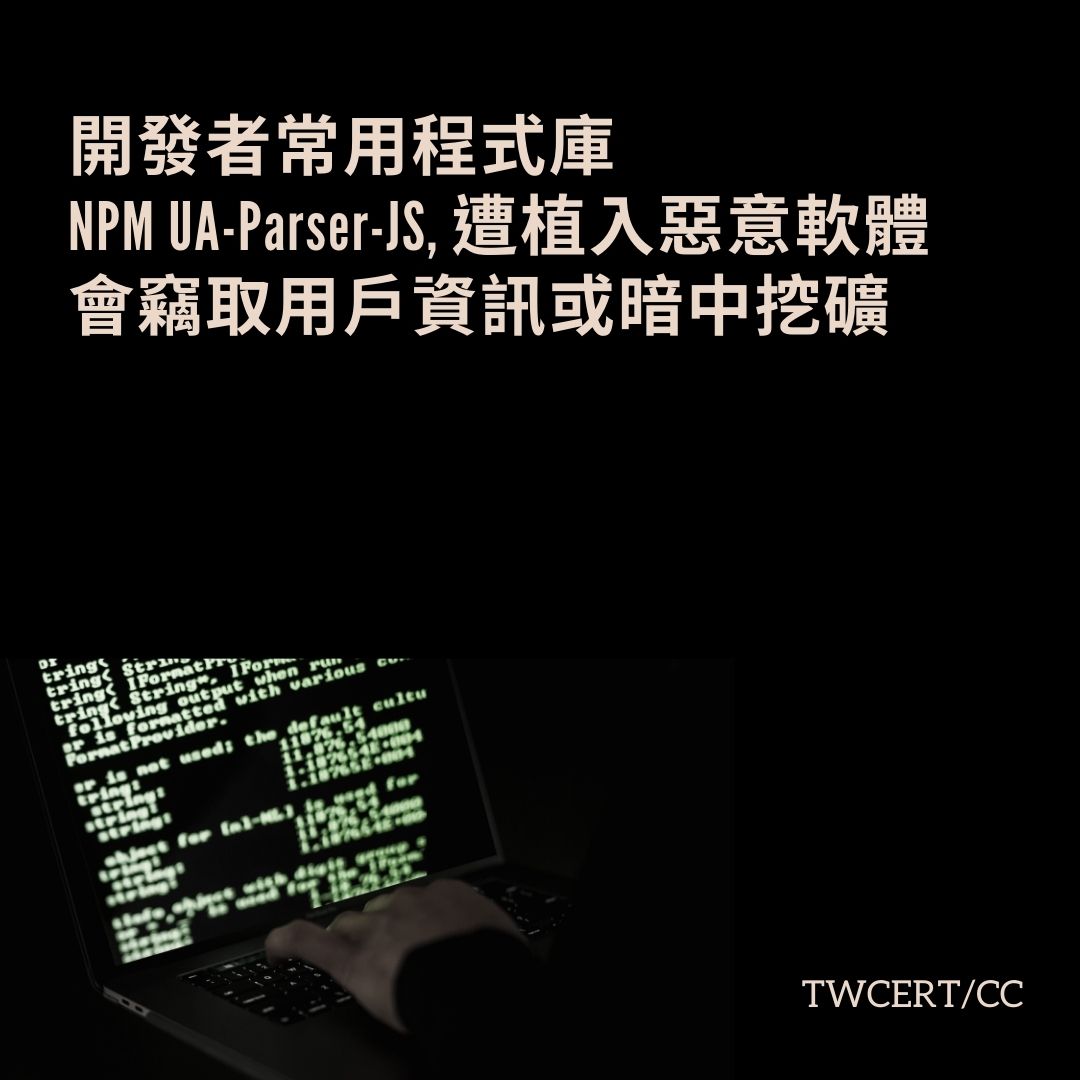 程式開發者經常使用的 NPM 程式庫 UA-Parser-JS,近日遭到駭侵者植入惡意軟體,用以發動供應鏈攻擊,利用受害用戶的設備挖掘加密貨幣,或是竊取用戶登入資訊。