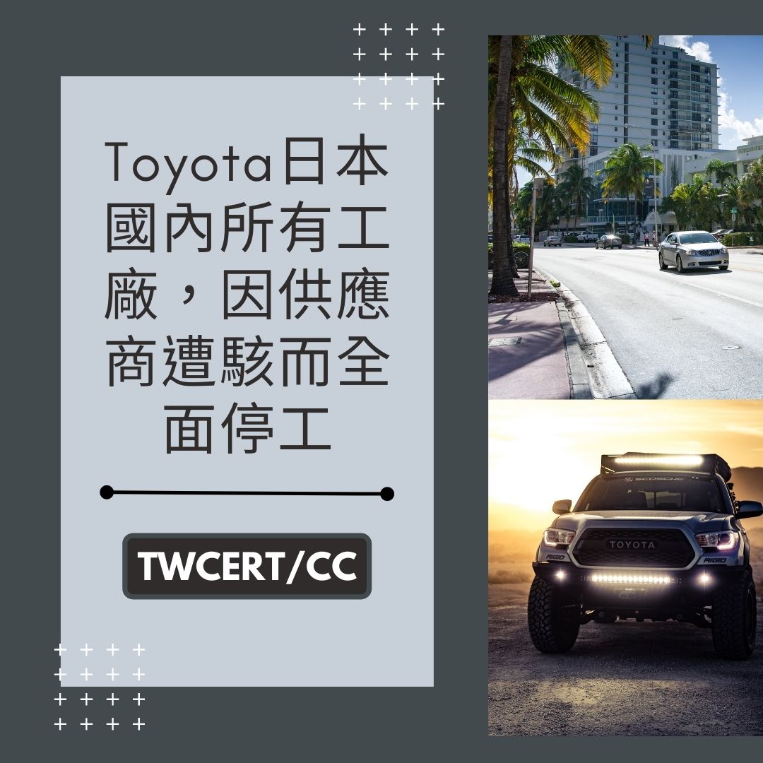 全球最大汽車製造商 Toyota,因為旗下的供應商伺服器遭到駭侵攻擊,日前宣布在日本國內的所有工廠,在 3 月 1 日全面停工一日。