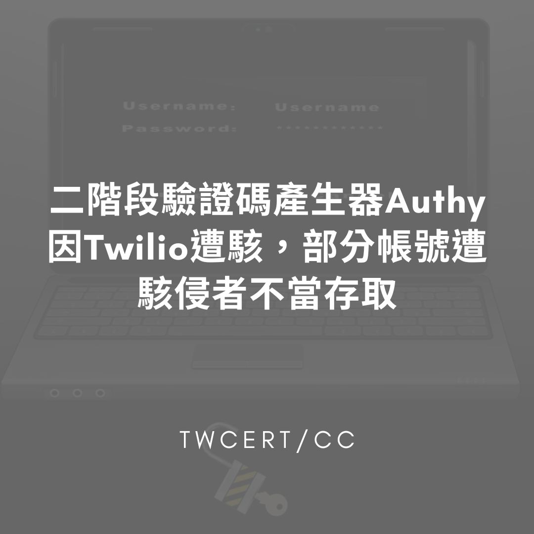 二階段驗證碼產生器 Authy 因 Twilio 遭駭,部分帳號遭駭侵者不當存取