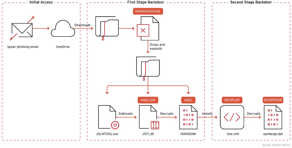 趨勢科技揭露APT組織Earth Kasha(歸類為APT10的子群)於2025年3月針對台灣與日本政府機關及公營機構發起一波網路攻擊活動,經調查研判,其主要目的為竊取機敏資料並進行間諜活動。此次攻擊利用釣魚郵件散播新版的ANEL後門程式,攻擊行動展現該組織攻擊手法與行為的技術不斷提升。