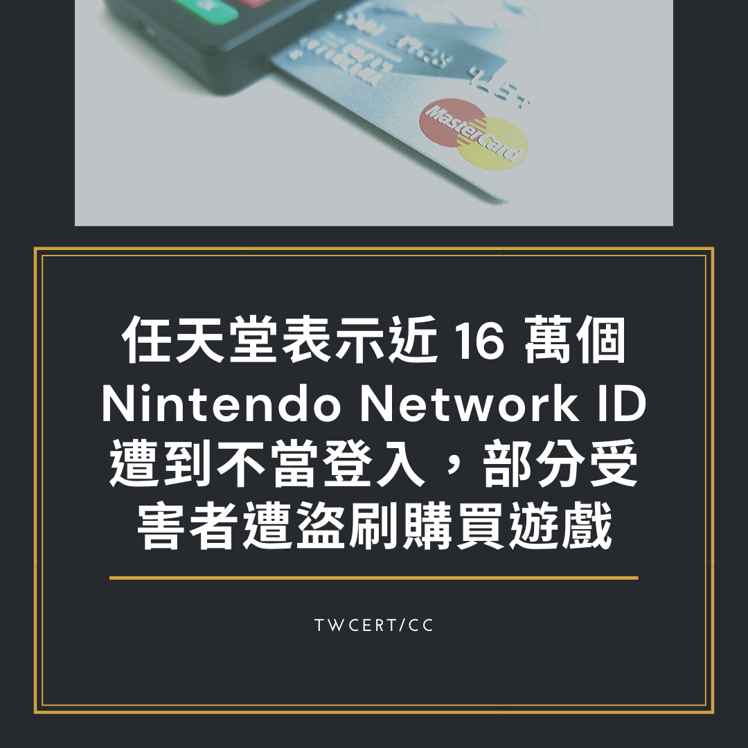 日本任天堂本社於日前發表聲明,指出約有 160,000 個 Nintendo Network ID 遭到不當登入使用,部分與帳號連動的信用卡,甚至遭到歹徒盜刷,用以購買「堡壘英雄」(Fortnite)遊戲中的虛擬貨幣或其他遊戲。