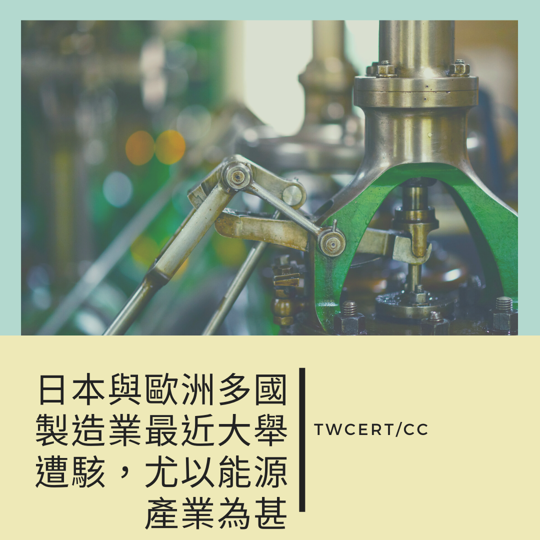 日本與歐洲多國製造業最近大舉遭駭,尤以能源產業為甚