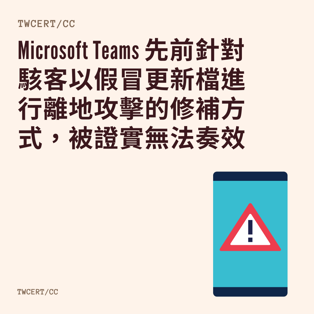 Microsoft Teams 先前針對駭客以假冒更新檔進行離地攻擊的修補方式,被證實無法奏效
