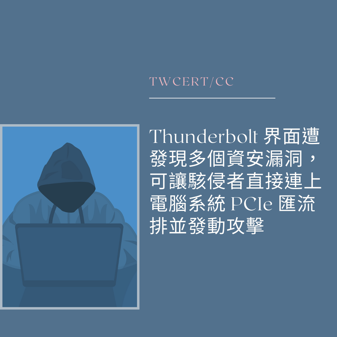 近來廣為各種電腦系統採用的高速傳輸界面 Thunderbolt,遭資安研究人員發現多個漏洞,最終可讓駭侵者直接存取電腦的 PCIe 高速匯流排,並發動各種攻擊。