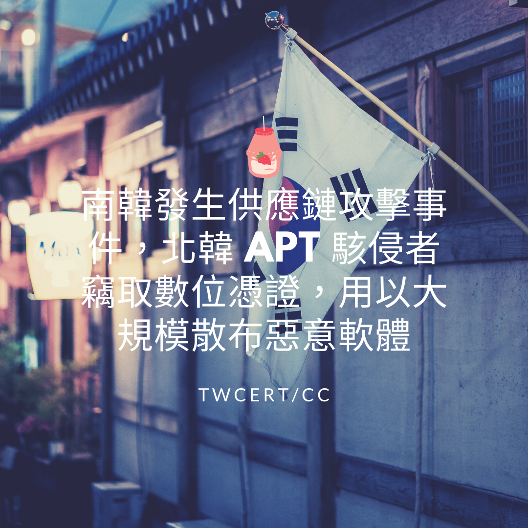 南韓發生供應鏈攻擊事件,北韓 APT 駭侵者竊取數位憑證,用以大規模散布惡意軟體