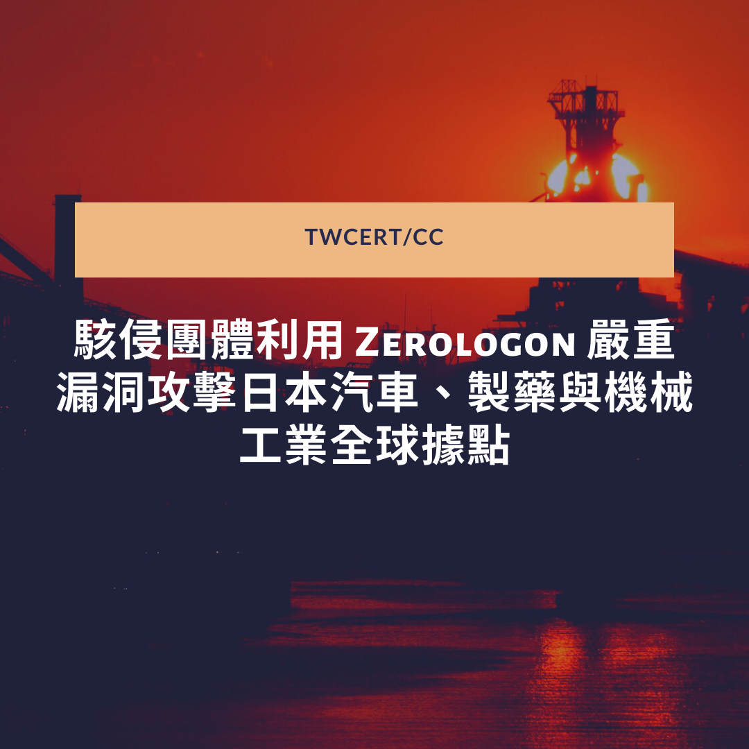 駭侵團體利用 Zerologon 嚴重漏洞攻擊日本汽車、製藥與機械工業全球據點