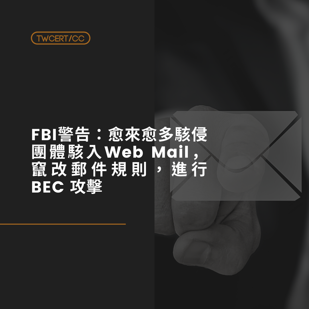 FBI 日前發表資安通報,指出有愈來愈多駭侵團體,駭入 Web Mail 伺服器上的自動轉寄的郵件規則,以 BEC 攻擊手法盜領各種款項,造成極大損失。