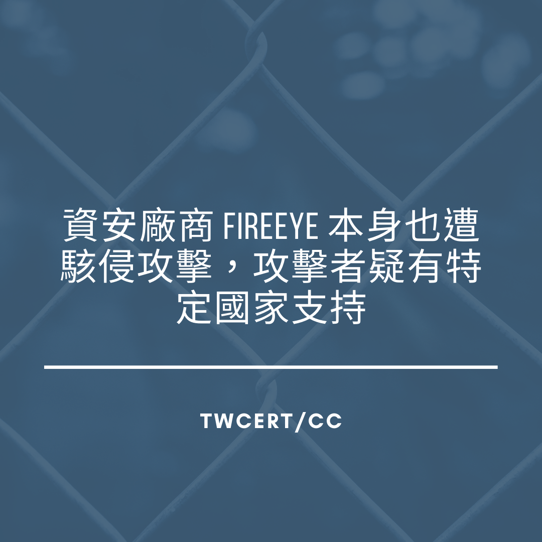 全球知名資安大廠 FireEye 也遭駭侵團體攻擊,該公司認為攻擊者可能由特定國家的支持。