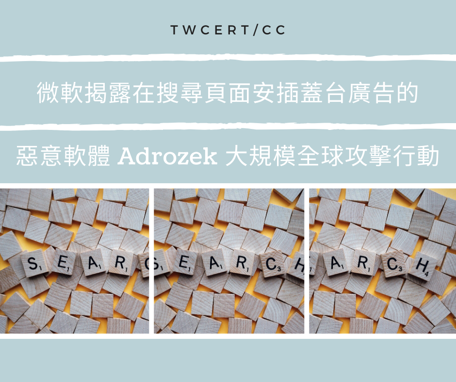 微軟旗下的資安研究單位 Microsoft 365 Defender Research Team,日前發表研究報告,指出該單位一個名為 Adrozek 的惡意軟體,會在搜尋頁面中安插蓋台廣告,以賺取不法廣告分潤。
