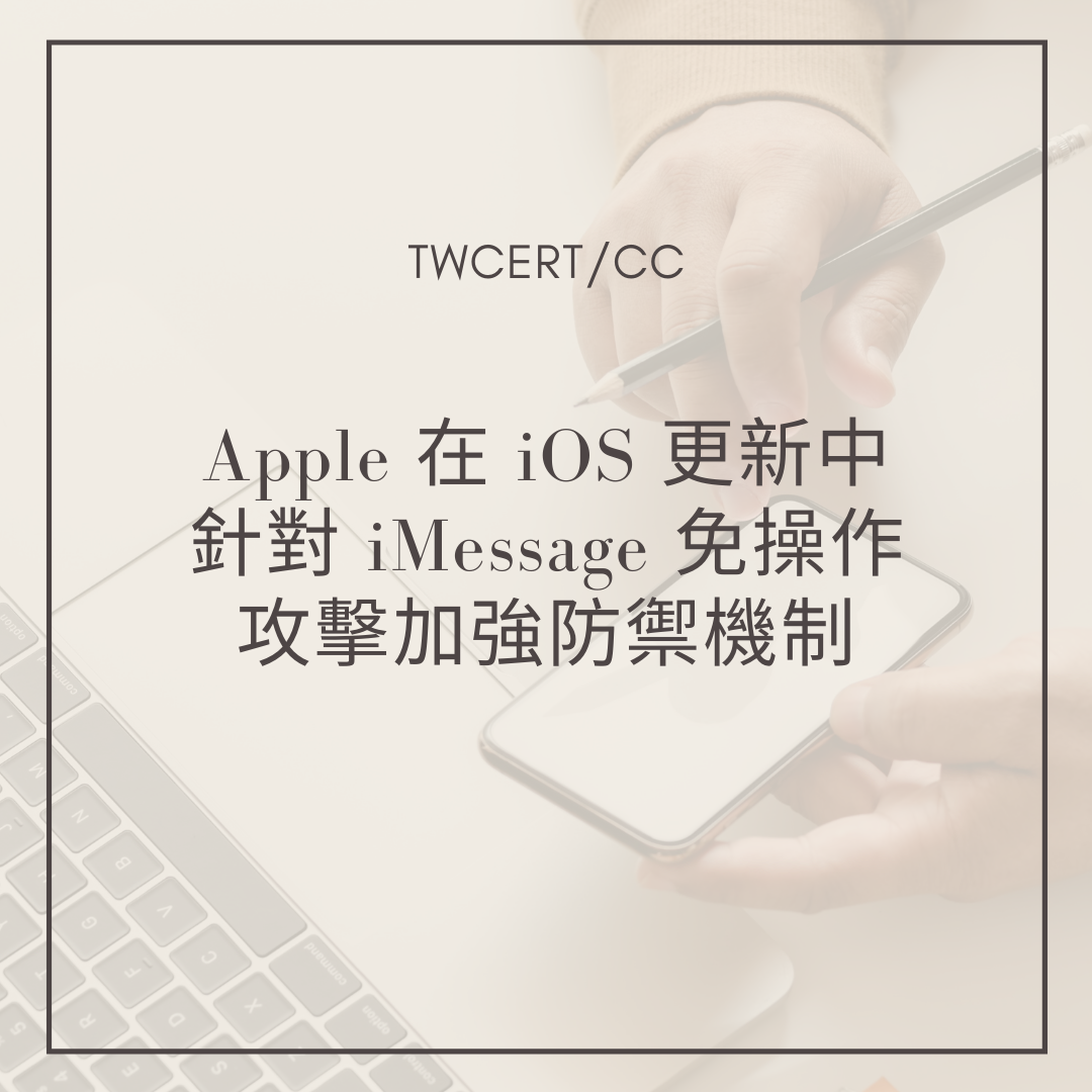 Google 旗下資安研究團隊 Project Zero 所屬的資安專家 Samuel Groß,日前發表研究報告指出,他發現 Apple 於日前推出的 iOS 更新中,悄悄針對 iMessage 的「免操作攻擊」(zero-click attack)新增多道防禦機制,以降低 iOS 裝置用戶在使用 iMessage 通訊時遭到此類攻擊的風險。
