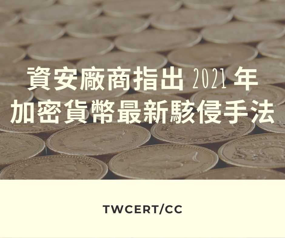 資安廠商近期指出 2021 年駭侵者可能會利用來竊取加密貨幣的多種手法;加密貨幣的投資人或持有人,應特別提高警覺。
