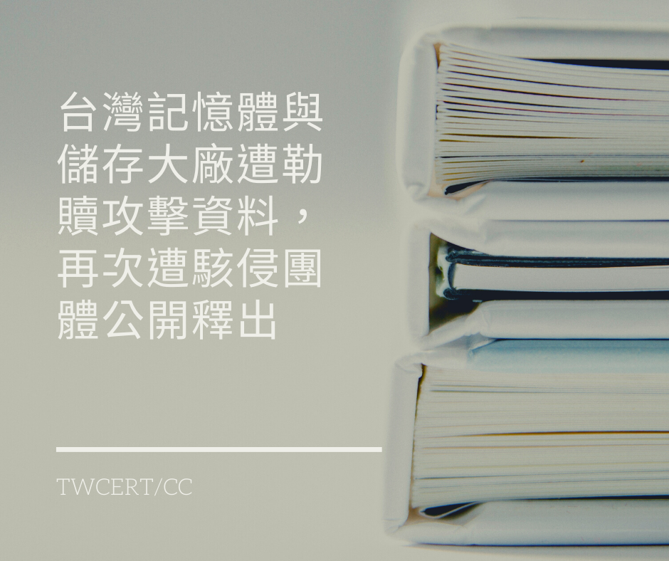 台灣記憶體與儲存大廠遭勒贖攻擊資料,再次遭駭侵團體公開釋出