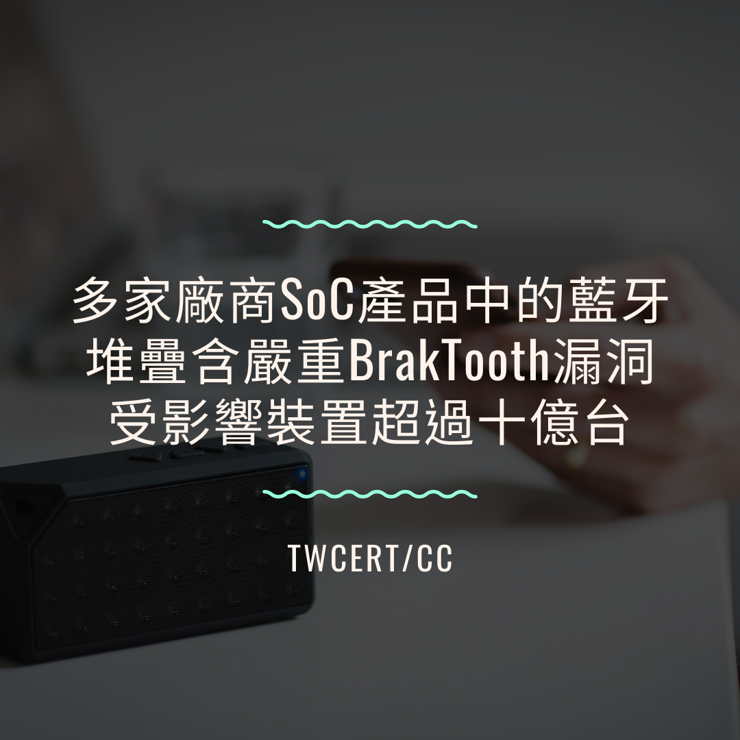 資安專家發現十多家廠商產製的單晶片系統,其內部的藍牙連線堆疊存有嚴重資安漏洞 BrakTooth,可導致駭侵者藉以發動多種資安攻擊行動。