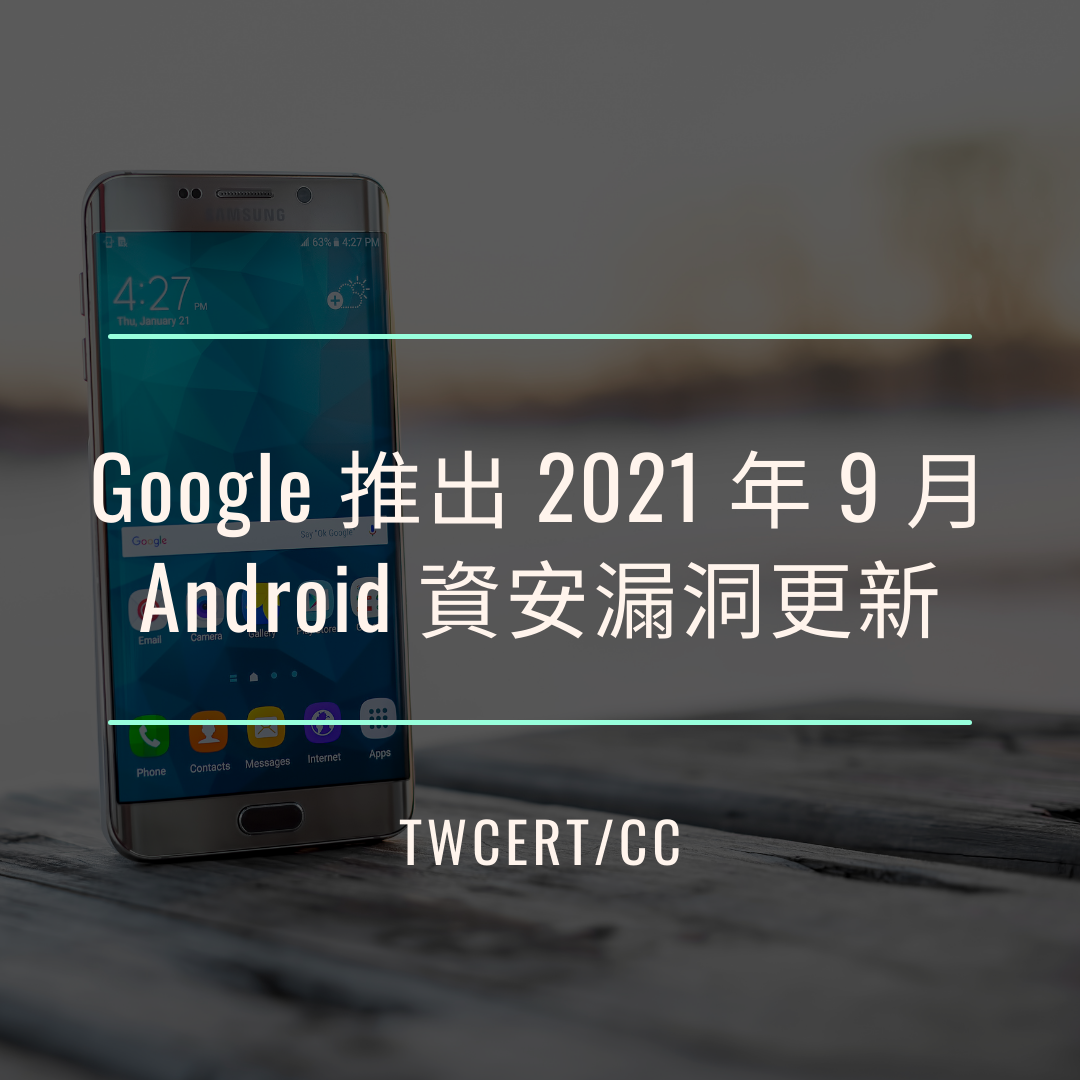 Google 近期推出 2021 年 9 月 Android 資安修補包,一共修復多達 40 個資安漏洞,其中包括多個嚴重等級漏洞;Android 裝置用戶應隨時注意裝置原廠推送的更新通知,一有更新可用,即應立刻更新。