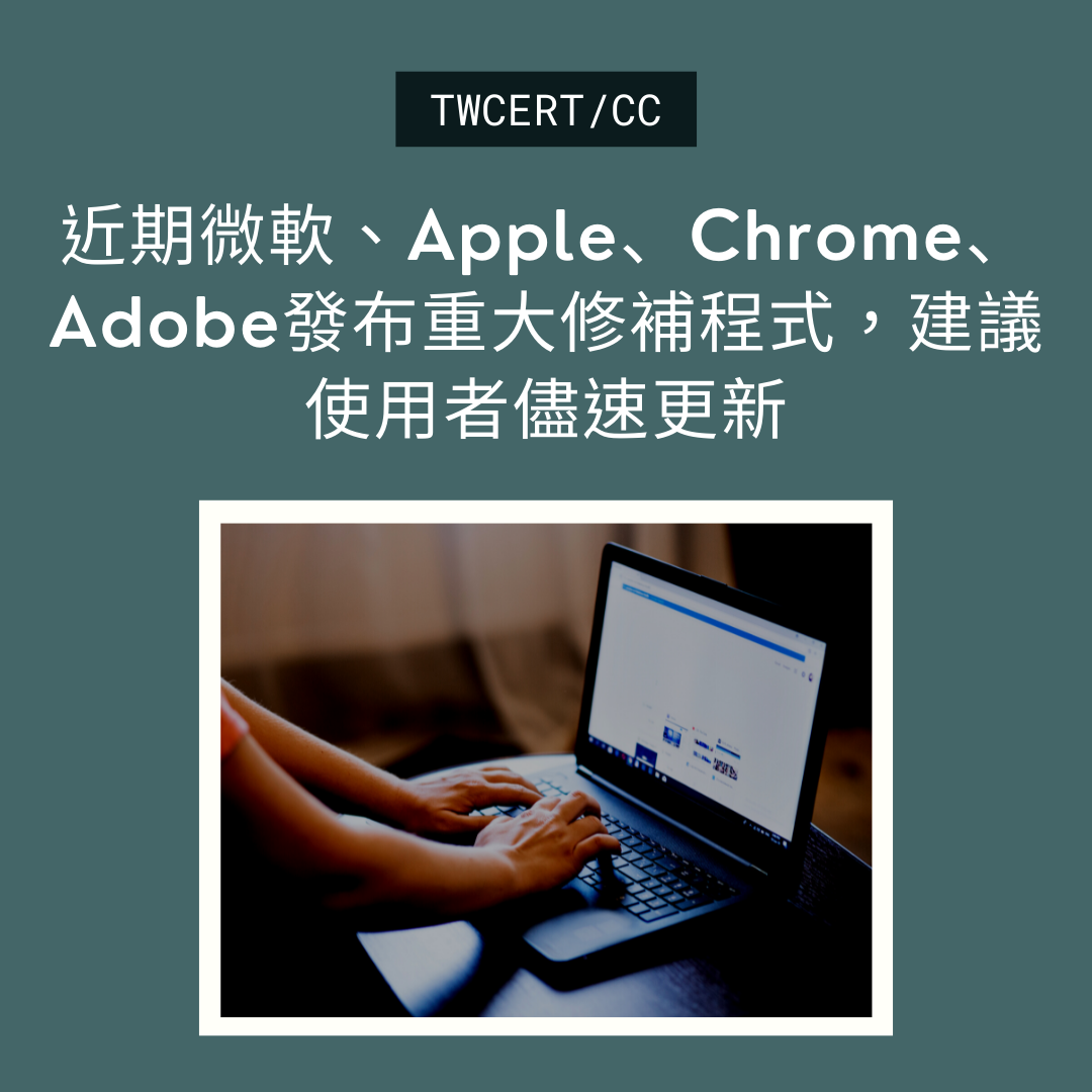 近期微軟、Apple、Chrome、Adobe發布重大修補程式,建議使用者儘速更新