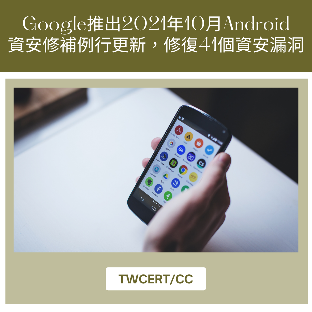 Google 近期推出 Android 2021 年 10 月資安更新,一共修補 41 個各種資安漏洞,其中有三個屬於嚴重等級。