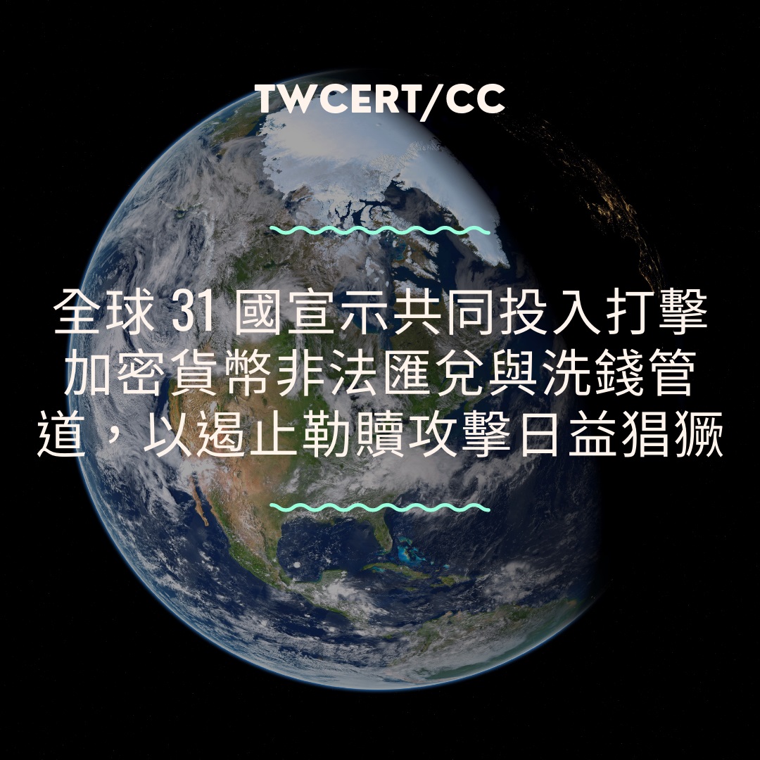 全球 31 國宣示共同投入打擊加密貨幣非法匯兌與洗錢管道,以遏止勒贖攻擊日益猖獗