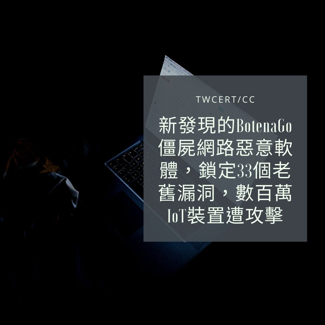 資安專家發現一個新的僵屍網路惡意軟體 BotenaGo,利用 33 個已知的老舊資安漏洞,鎖定數百萬台 IoT 設備發動攻擊。