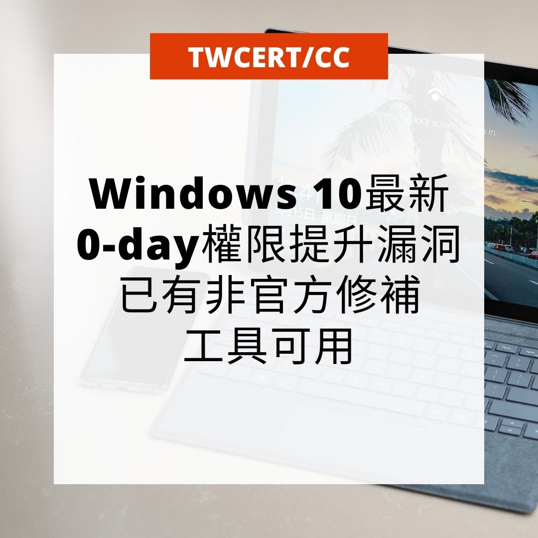 一個近期發現,可讓駭侵者用以提升本地端執行權限的 Windows 10 0-day 漏洞,得到非官方的修補方案;Windows 用戶可套用此解決方案,以暫時避免遭駭侵者以此漏洞發動攻擊。