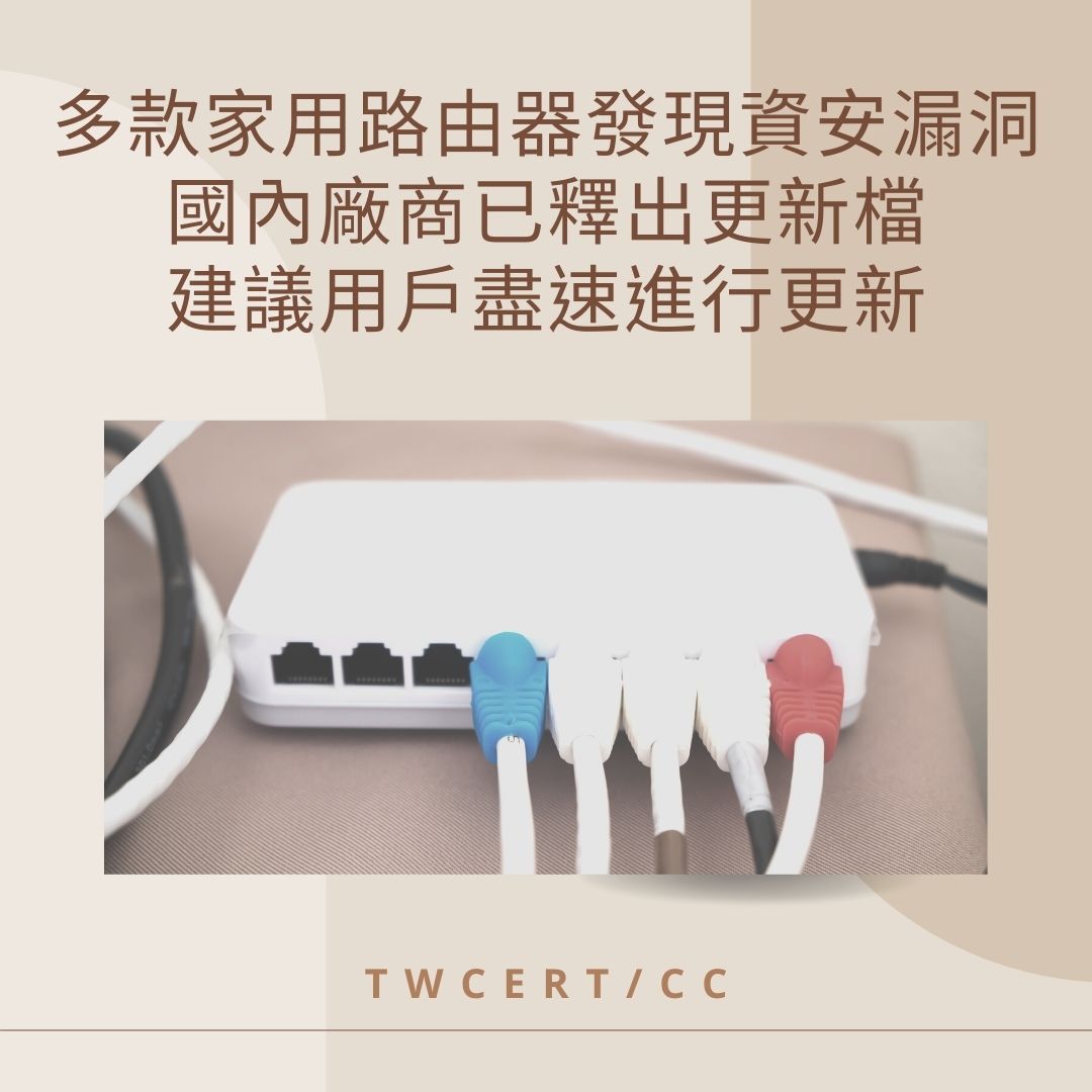 多款家用路由器發現資安漏洞,國內廠商已釋出更新檔,建議用戶盡速進行更新