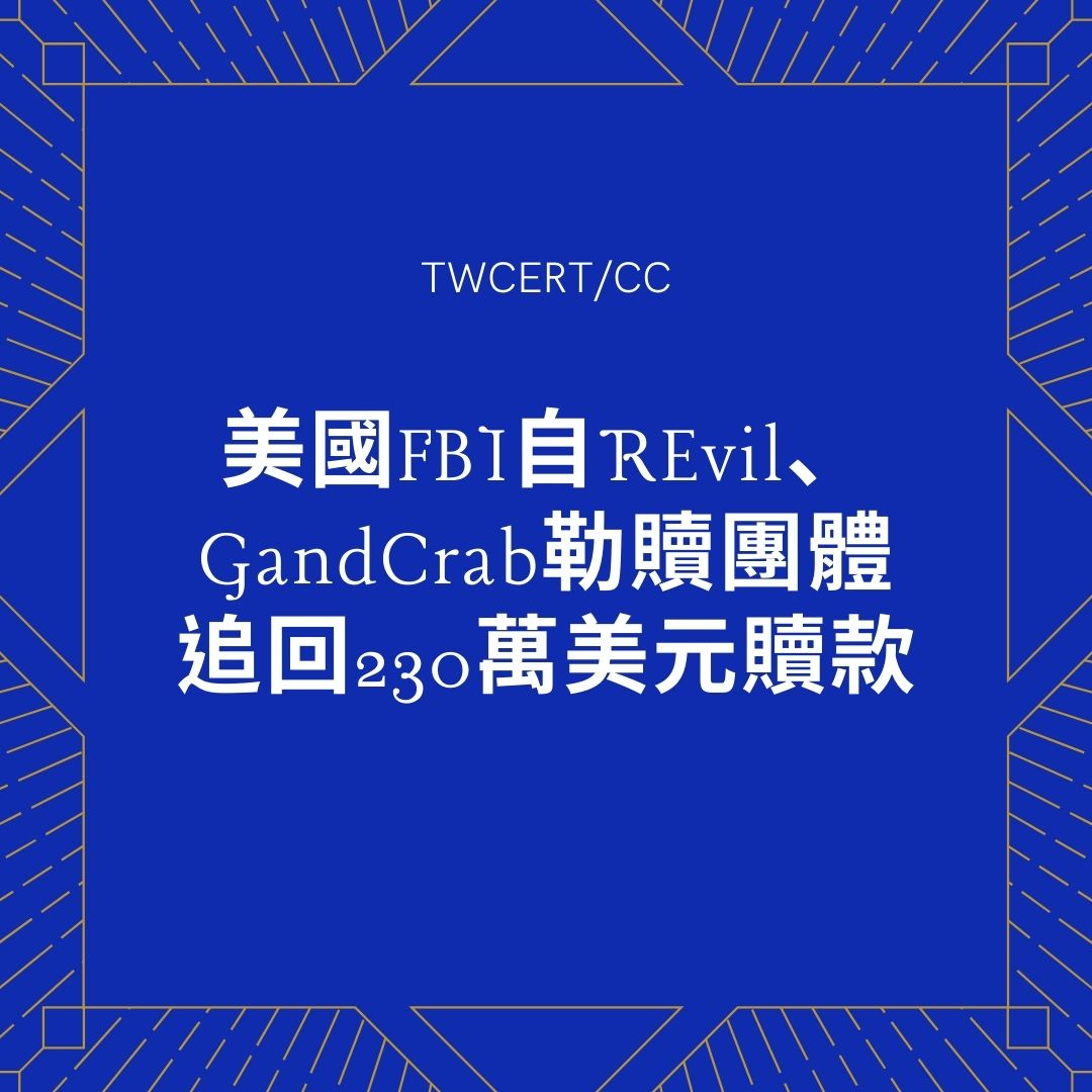 美國聯邦調查局(Federal Bureau of Investigation, FBI)日前宣布追回一批勒贖駭侵團體 REvil 獲取的不法贖金,總金額高達 230 萬美元。