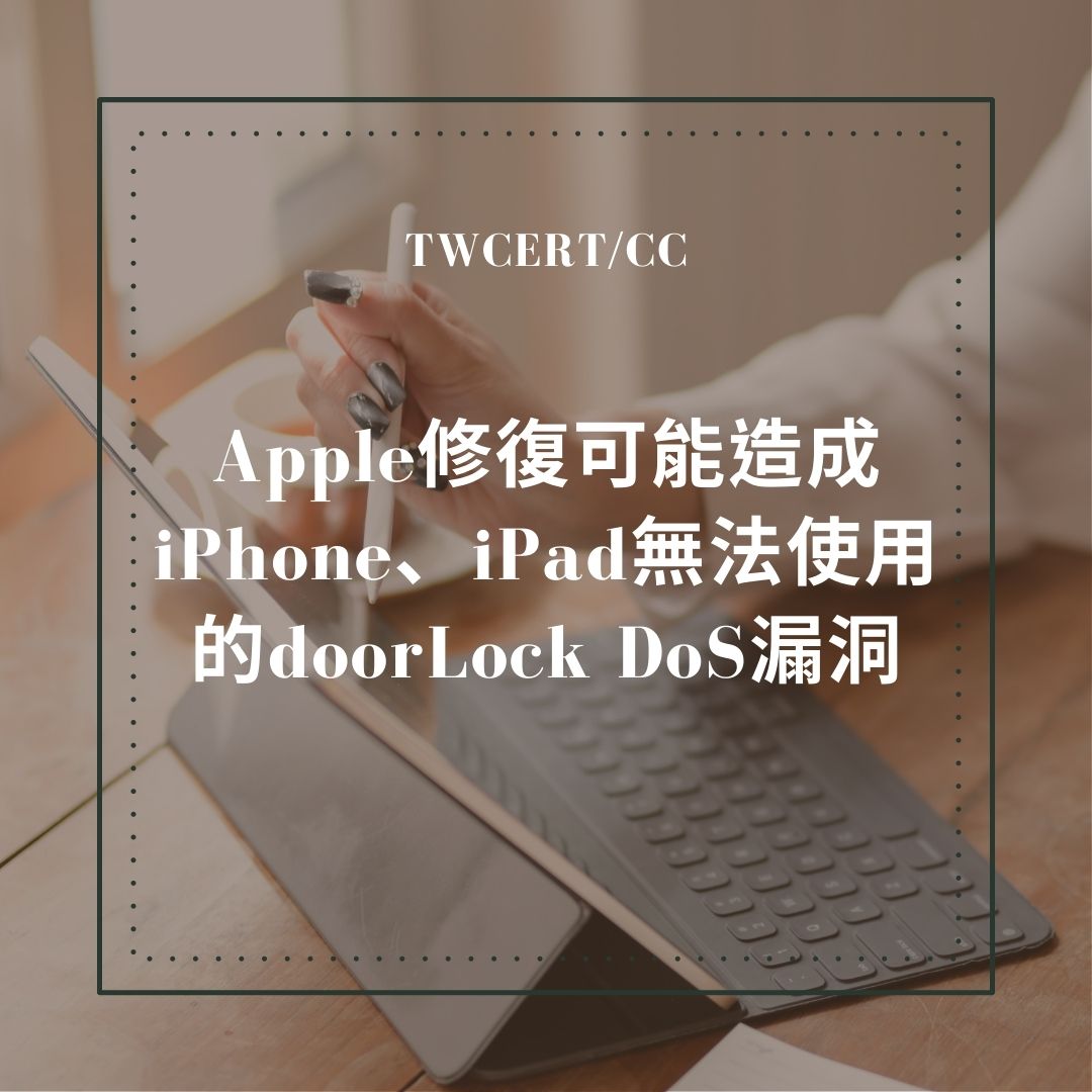 Apple 近日推出針對所謂「doorLock」DoS (Denial of Service,即服務阻斷攻擊)漏洞的資安更新;該漏洞可能導致用戶的 iPhone 與 iPad 無法使用,用戶應立即更新。