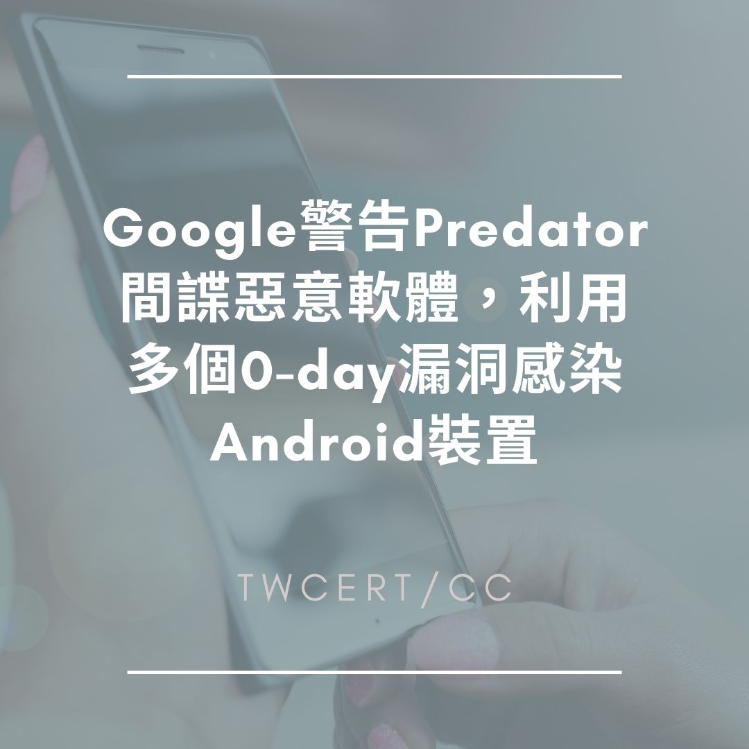 Google 旗下資安團隊 Threat Analysis Group (TAG),日前發現有駭侵團體利用 5 種不同的 0-day 漏洞發動資安攻擊,在受害者手機中植入一種名為 Predator 間諜惡意軟體。