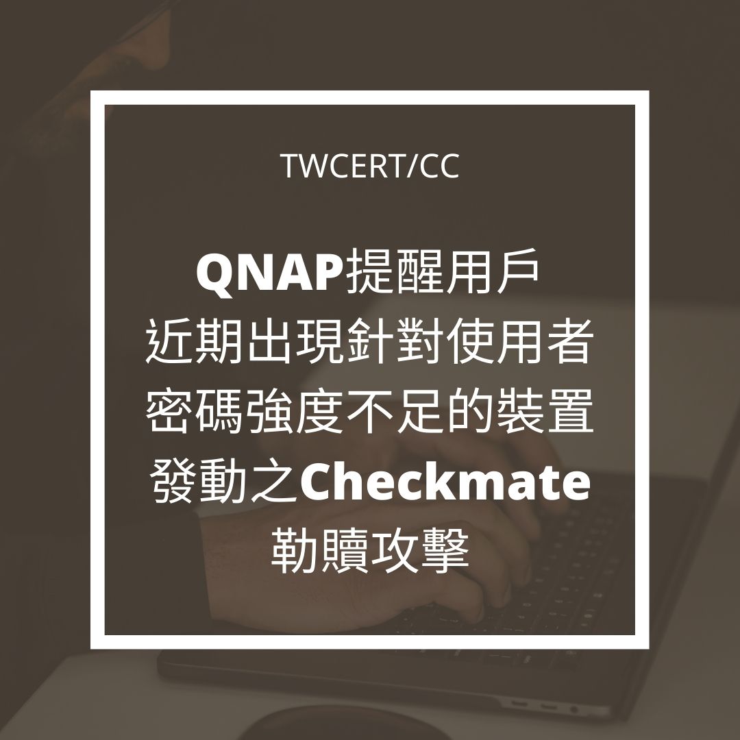 台灣專業網路儲存設備廠 QNAP (威聯通)推出各型網路儲存裝置(Network Attached Storage, NAS),近來發現一波新的 Checkmate 勒贖攻擊;該攻擊主要針對使用者密碼強度不足,且對外網啟用 SMB 連線服務的裝置進行攻擊。