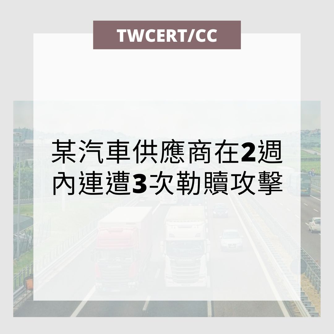 某汽車供應商在 2 週內連遭 3 次勒贖攻擊