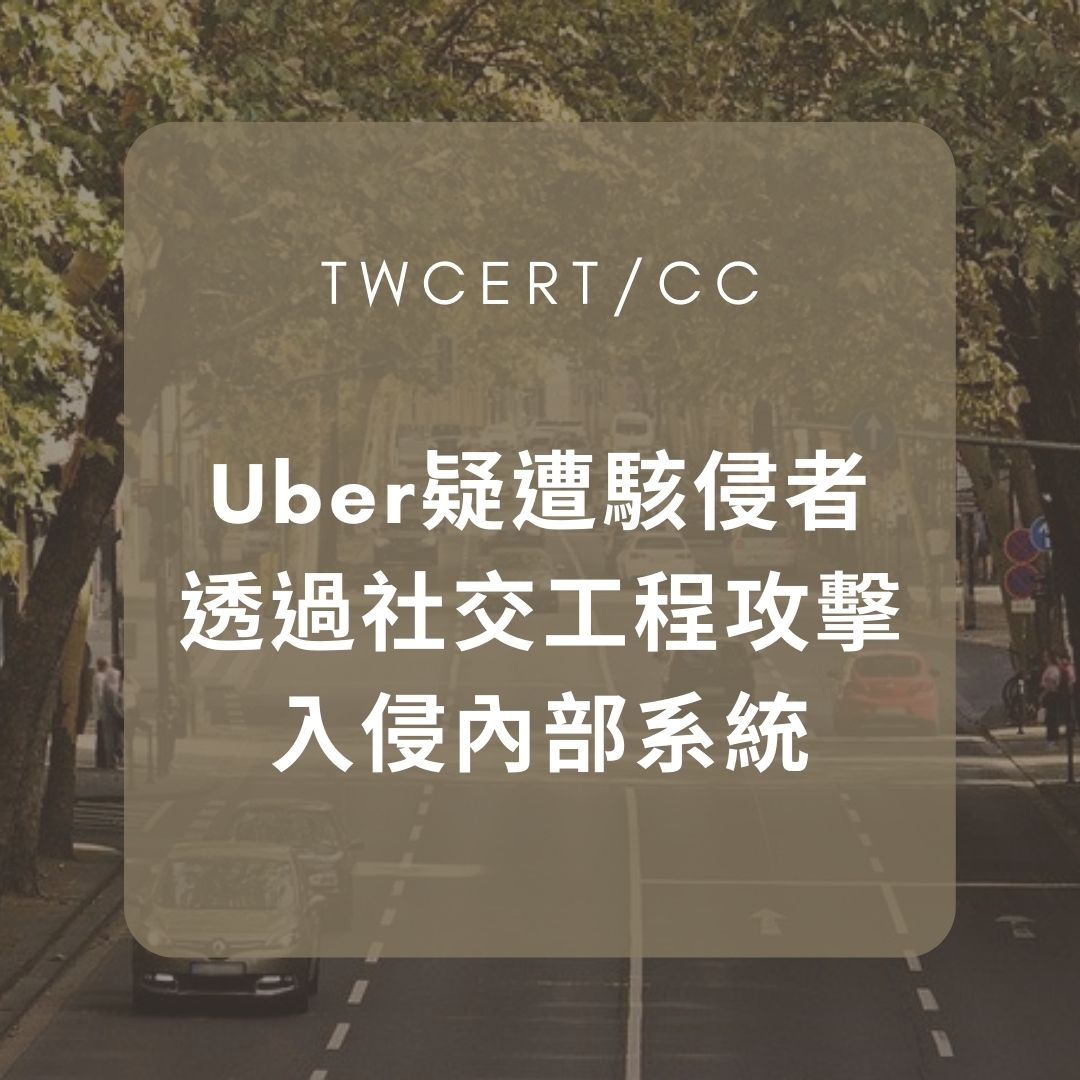 共享乘車與送餐服務大型業者 Uber,於本(2022)年 9 月 15 日發布資安通報,指出該公司發生內部系統遭駭侵者以社交工程攻擊手法入侵的資安事件;目前該公司調查查無用戶個人隱私資訊遭到不當存取的證據。