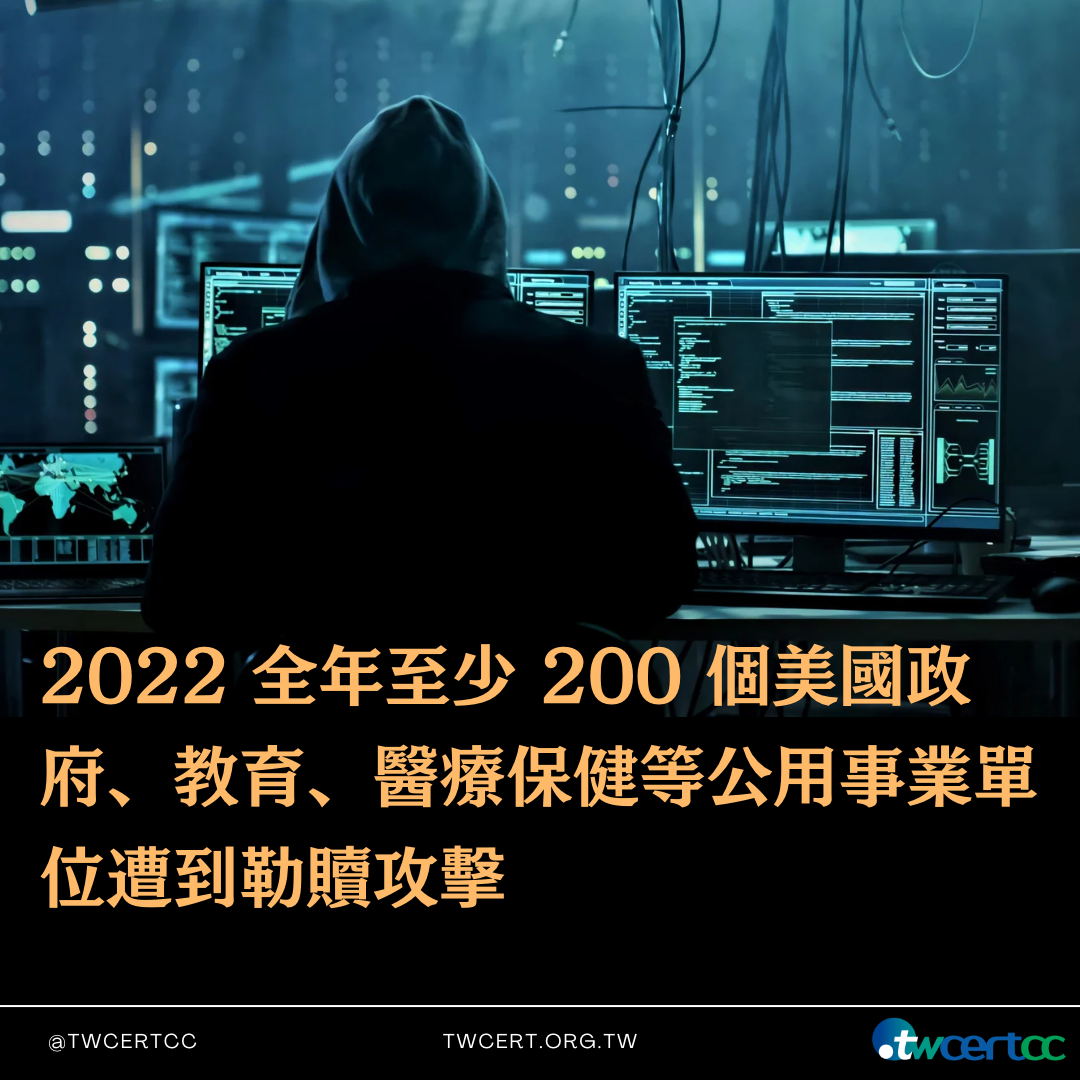2022 全年,至少有 200 個美國政府、教育、醫療保健等公用事業單位遭到勒贖攻擊