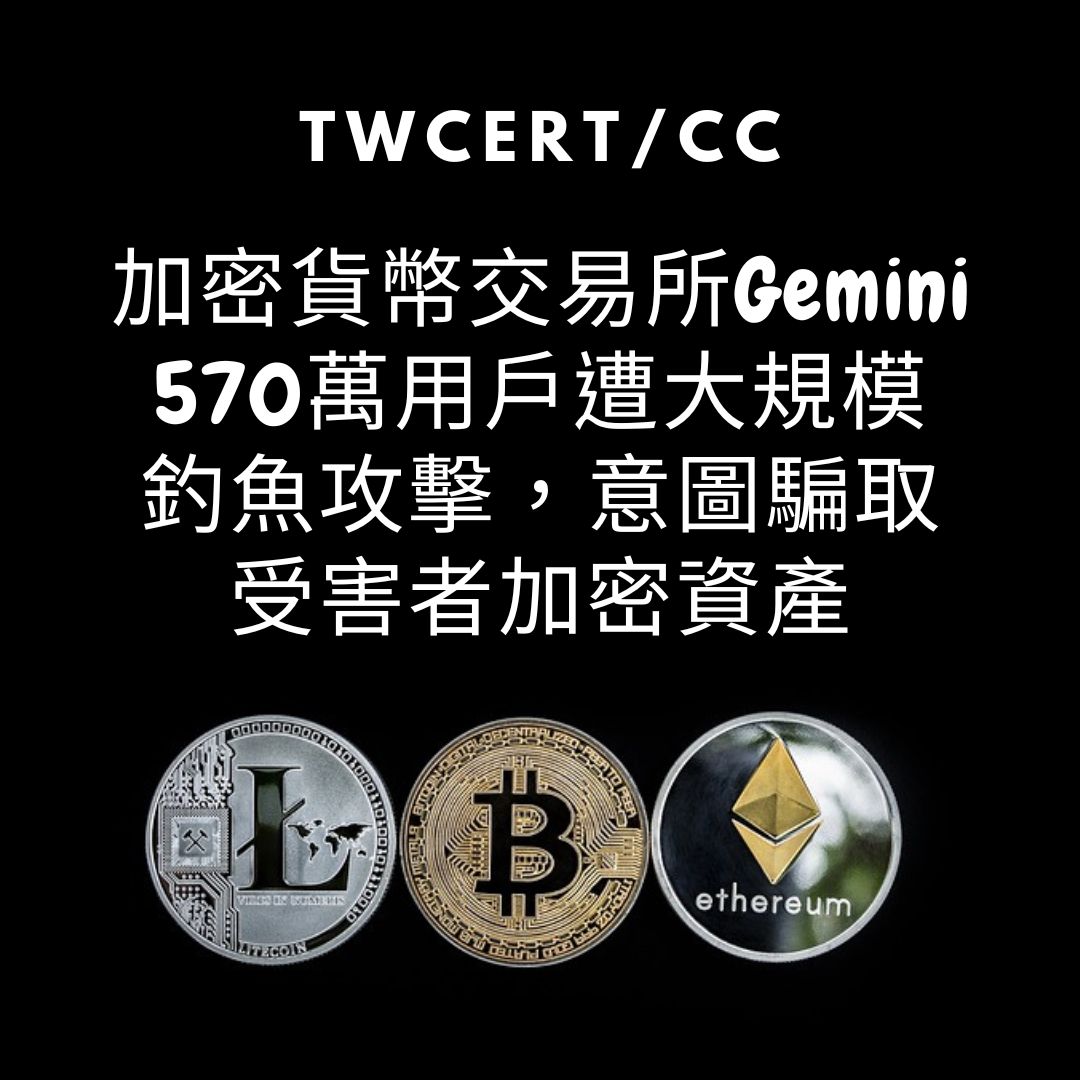 加密貨幣交易所 Gemini 570 萬用戶遭大規模釣魚攻擊,意圖騙取受害者加密資產