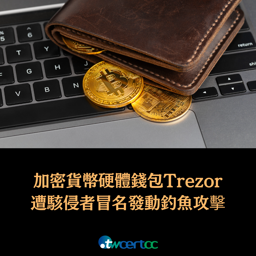 專門製造硬體加密貨幣冷錢包的 Trezor 公司,近日發布資安警訊,指出該公司遭到駭侵者冒名藉以發動釣魚攻擊活動,意圖騙取使用者設定的錢包復原短語,將用戶加密資金盜領一空。