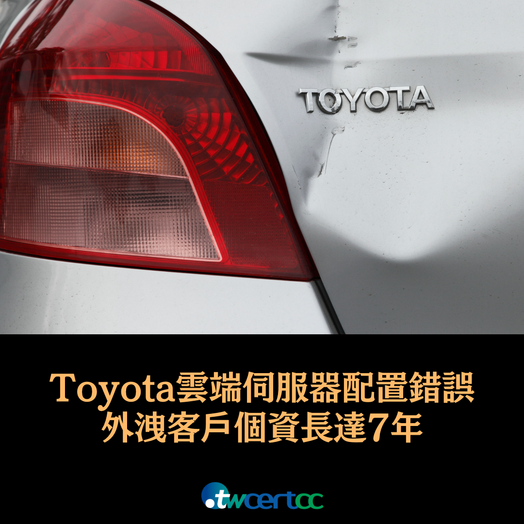 全球汽車製造行銷大廠 Toyota,日前在進行進一步的資安檢測時,發現有兩個配置錯誤的雲端伺服器,造成客戶個資外洩,且時間長達 7 年之久。