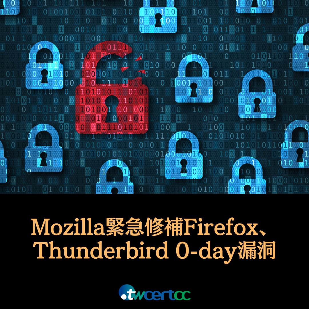 Mozilla 日前針對一個證實已遭用於駭侵攻擊的 Firefox、Thunderbird 0-day 嚴重漏洞推出緊急修補更新,使用者應立即套用。